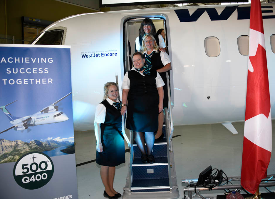Westjet Encore, filial de la aerolínea canadiense Westjet, ha recibido este jueves, su avión Bombardier Q400 número 22 de un pedido de 36, y que tiene la particularidad de ser el Nº 500 este modelo que produce el fabricante.