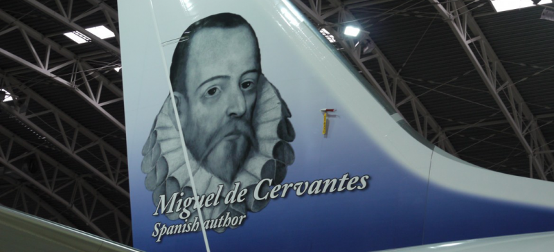 Norwegian decora la cola de un avión con la figura de Cervantes.
