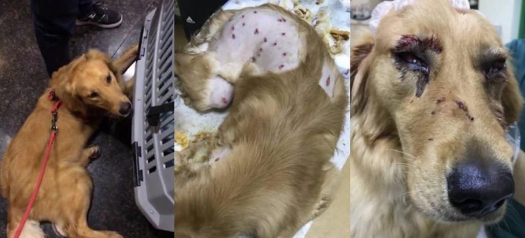 Esas son las heridas causadas a Er Mao, un golden retriever, tras un viaje en un avión. Según los informes, el animal escapó de la cabina de carga de China Eastern Airlines, en Shanghai, y el personal de aeropuerto tuvo que ir persiguiéndole para meterlo de nuevo en la jaula.