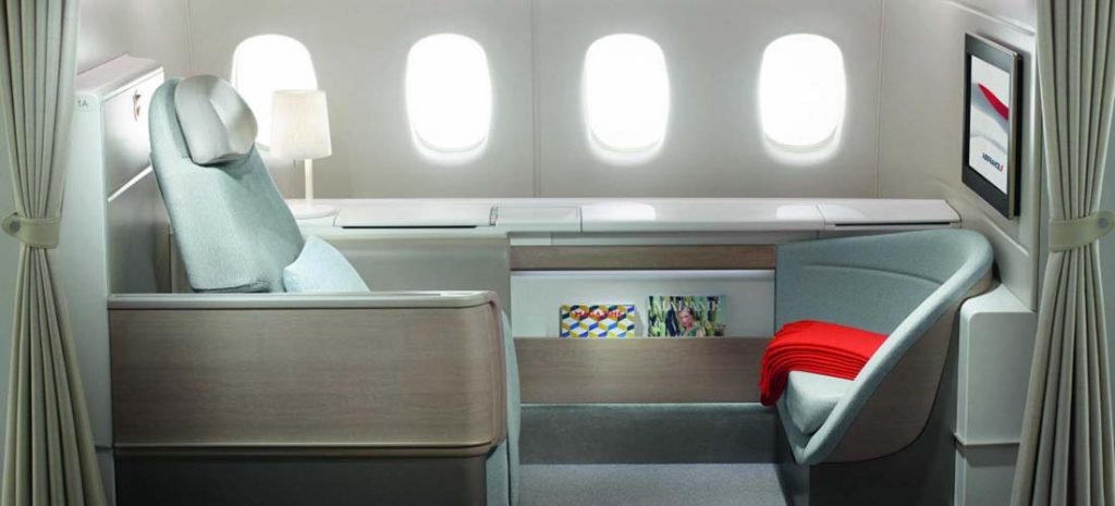 La Première, la renovada primera clase de Air France, donde cada viajero tiene una estancia de 3 metros cuadrados. La experiencia arranca en casa: traslado en Jaguar, spa, cocina de Alain Ducasse y el mejor pijama de todas las aerolíneas.