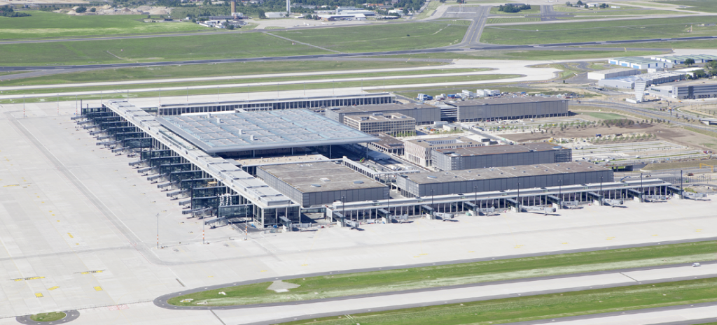 El nuevo Aeropuerto Internacional de Berlin-Brandeburgo (BER), cuyas obras empezaron en 2006, debía sustituir a los dos aeropuertos actuales de la capital alemana, el de Tegel (oeste) y el de Schönefeld (este), ambos saturados.