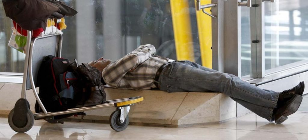Retrasos, conexiones con largas esperas y muchos tramos (que suelen abaratar el costo del billete), huelgas de personal, problemas meteorológicos o técnicos, o simplemente, perder un vuelo pasan factura a los pasajeros, que acaban sucumbiendo al cansancio. Se sabe, dormir en un aeropuerto no suele ser confortable, pero muchos viajeros, vencidos por la fatiga, se las ingenian para descansar en la posición menos incómoda posible: en el suelo, en un asiento, reclinados sobre el apoya brazos, encima del equipaje…
