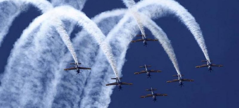 También se llevaron palmas la escudrilla Fumaça de la Fuerza Aérea Brasileña, caracterizada por hacer letras con humo en el cielo, con sus turbohélices Embraer EMB 314 y Super Tucano.