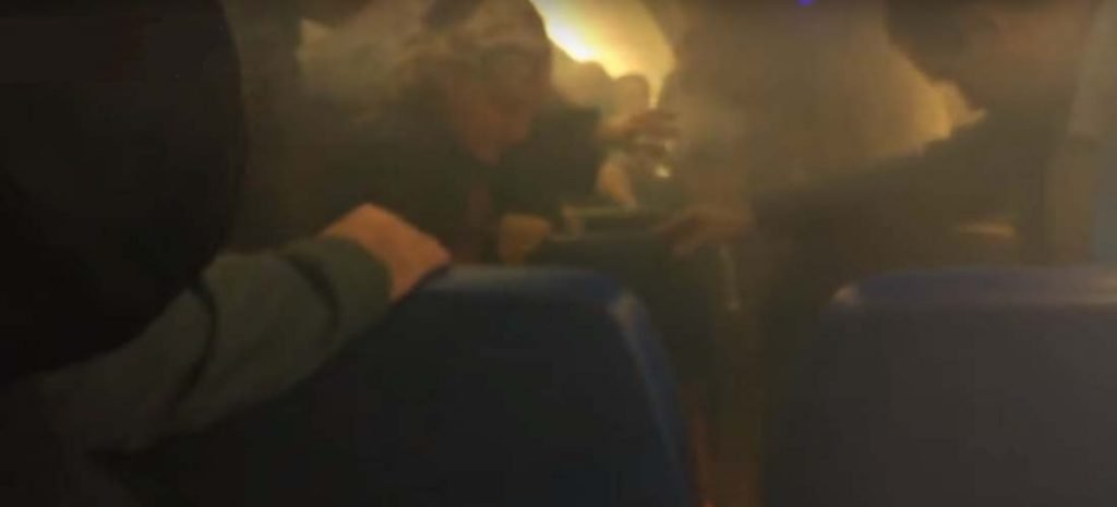 El estallido espontáneo del dispositivo de carga portátil prendió fuego uno de los asientos en la cabina de clase turista e hizo crecer el humo, según muestran imágenes de vídeo distribuidas en redes sociales.