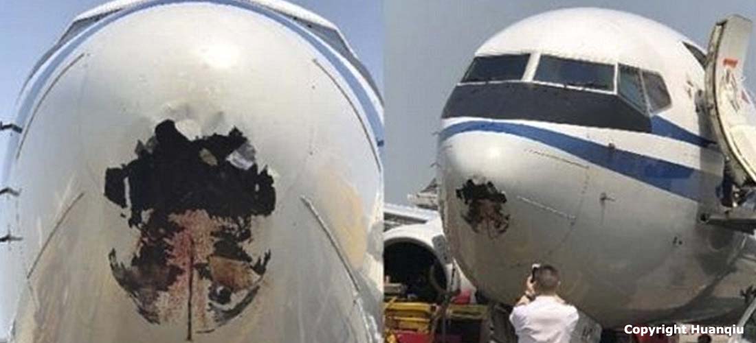 Un avión de Air China terminó con un gran agujero en su nariz tras colisionar con un ave durante un vuelo. El incidente no dejó personas lesionadas.