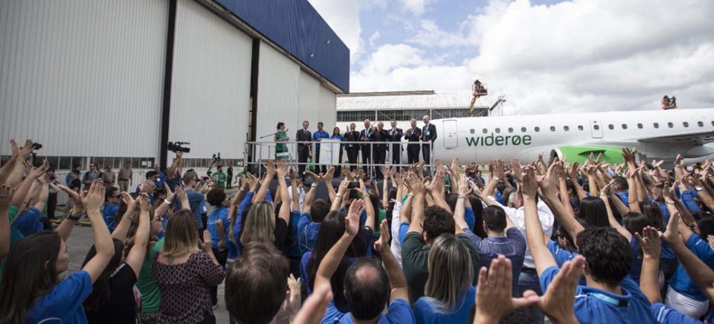 Durante el acto, el presidente de Embraer, Paulo Cesar de Souza e Silva, afirmó que la entrega «representa una nueva era en la aviación comercial de Embraer», sector que hoy aglutina el 60 % de las operaciones de la compañía.