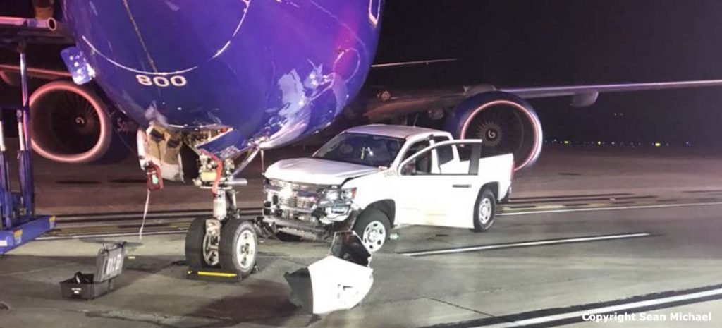 Una camioneta en la pista del Aeropuerto Internacional de Baltimore-Washington Thurgood Marshall chocó con un avión de la compañía Southwest Airlines la madrugada de este lunes, sin que se reportaran heridos entre los pasajeros.