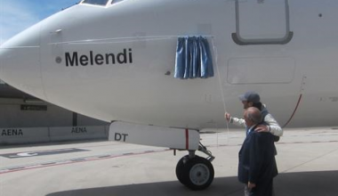OOtras Ver Más Air Europa bautiza un Boeing 737-800 con el nombre del cantante Melendi.abril 29, 2014 La compañía Air Europa ha bautizado con el nombre de Melendi a uno de sus aviones 737-800, parte…