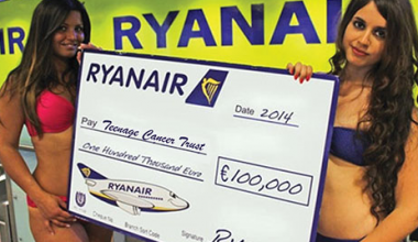 OOtras Ver Más Ryanair dona los 100.000 euros recaudados con su calendario de 2014 a adolescentes con cáncer.marzo 18, 2014 Ryanair ha entregado este martes un cheque por importe de 100.000 euros a la organización benéfica ‘Teenager Cancer…