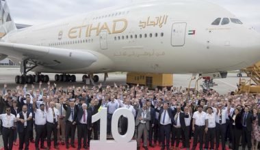 AAerolíneas Ver Más Etihad Airways celebra la entrega de su décimo ‘superjumbo’.porAviación al Díamayo 26, 2017 Los empleados de Etihad Airways han celebrado la entrega de su décimo y último A380, conocido como ‘superjumbo’, en…