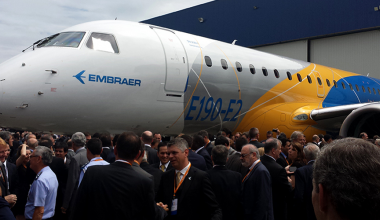 LLa Industria Ver Más La brasileña Embraer presenta su primera aeronave de «segunda generación».porAviación al Díafebrero 25, 2016 La fabricante aeronáutica brasileña Embraer presentó hoy el modelo del avión comercial E190-E2, el primero de la llamada…